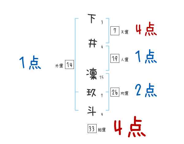 下井凜玖斗さんの画数の鑑定結果