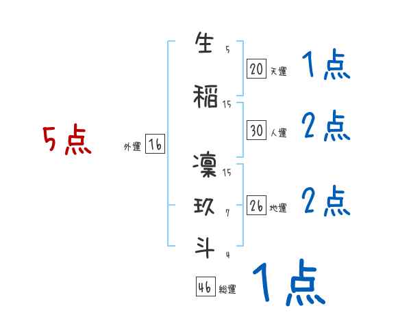 生稲凜玖斗さんの画数の鑑定結果