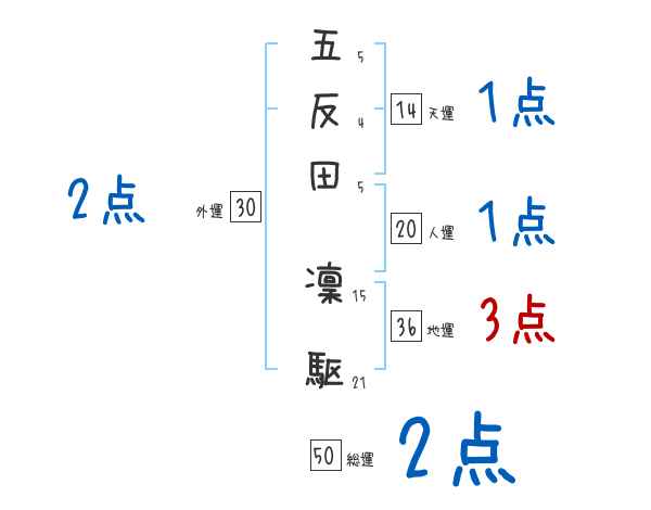 総運![]() | 五反田凜駆さんの総運は50画の2つ星!浮き沈みが激しく不安定。しりすぼみに衰退しやすいので注意しましょう。 あなたの人生を表す1番重要な運勢です。生涯を通じて影響する総合運となり、主に50歳以降の晩年期に影響を及ぼします。 |