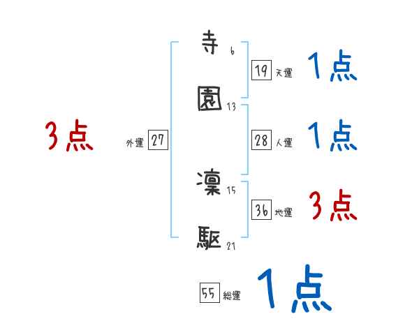 寺園凜駆さんの画数の鑑定結果