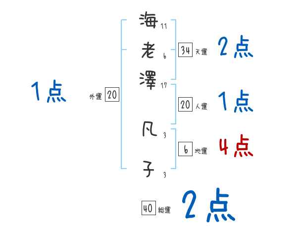 天運![]() | 海老澤凡子さんの天運は34画の2つ星!独創性に優れるが、自尊心が強く災難に注意しましょう。 家系が持つ宿命的な運勢を表します。祖先から受け継いだ苗字ですので自分の力が及びません。家柄を象徴します。 |