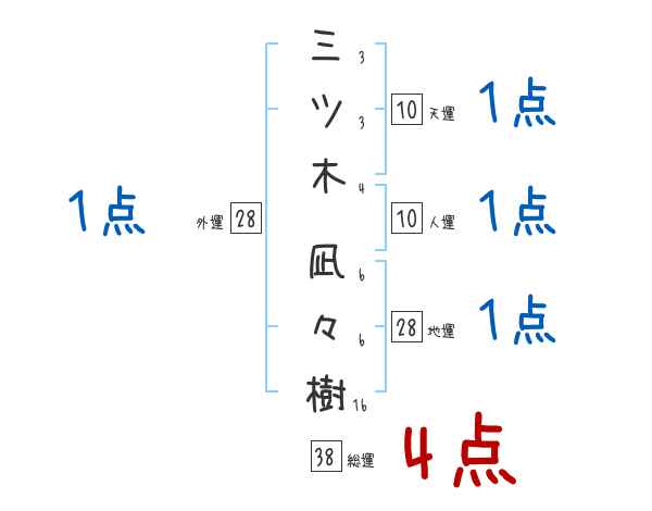 天運![]() | 三ツ木凪々樹さんの天運は10画の1つ星!不安を感じやすい傾向。ストレスを抱えないように注意しましょう。 家系が持つ宿命的な運勢を表します。祖先から受け継いだ苗字ですので自分の力が及びません。家柄を象徴します。 |