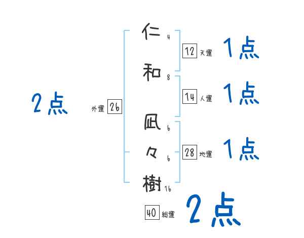 仁和凪々樹さんの外運は26画の2つ星