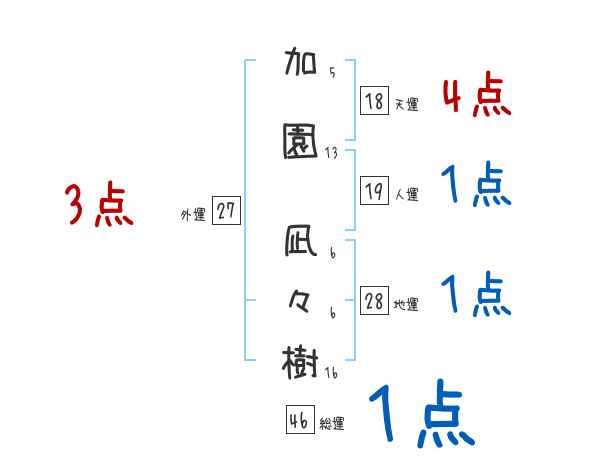 加園凪々樹さんの画数の鑑定結果
