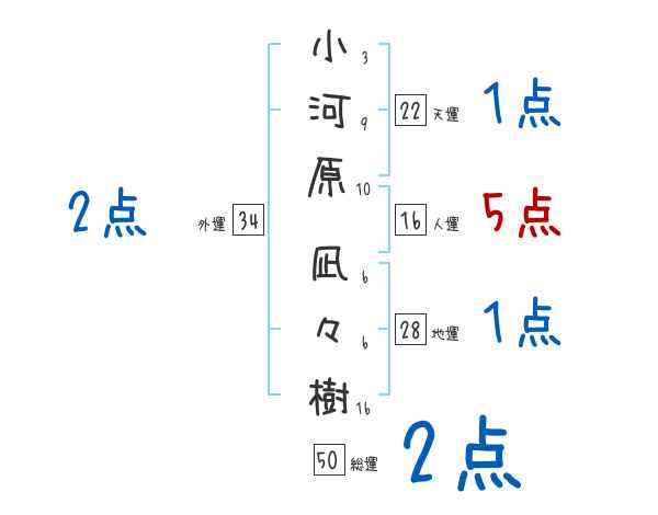 小河原凪々樹さんの画数の鑑定結果