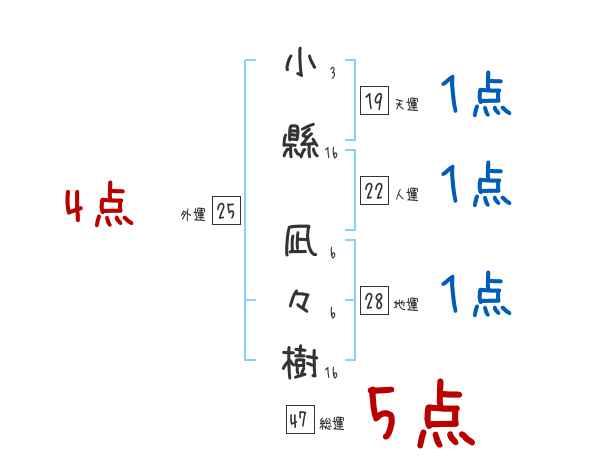 総運![]() | 小縣凪々樹さんの総運は47画の5つ星!実力が開花し発展する円満な人生。財に恵まれる。 あなたの人生を表す1番重要な運勢です。生涯を通じて影響する総合運となり、主に50歳以降の晩年期に影響を及ぼします。 |