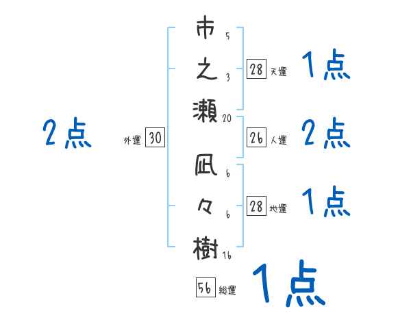 市之瀬凪々樹さんの画数の鑑定結果
