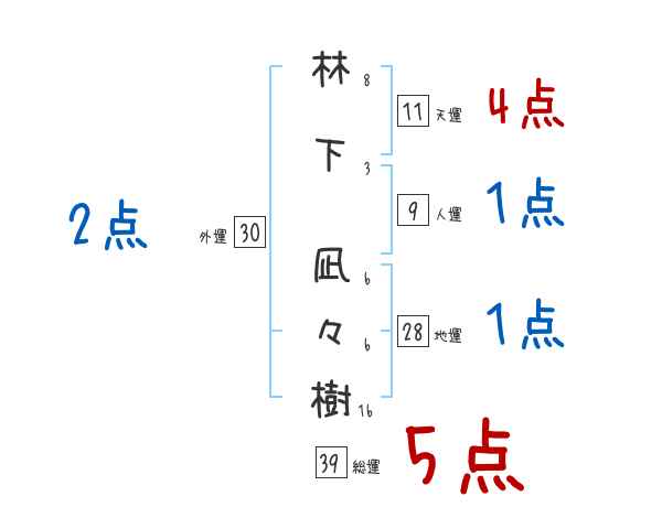外運![]() | 林下凪々樹さんの外運は30画の2つ星!浮き沈みの激しさに注意しましょう。 生活面を象徴する運勢です。外部から受ける影響力を表し、結婚運、家庭運や職場、環境への順応性を表します。 |