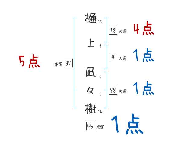 天運![]() | 樋上凪々樹さんの天運は18画の4つ星!情熱的で剛気。忍耐力があり信頼される。 家系が持つ宿命的な運勢を表します。祖先から受け継いだ苗字ですので自分の力が及びません。家柄を象徴します。 |