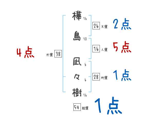 人運![]() | 樺島凪々樹さんの人運は16画の5つ星!人望が厚く大きく発展する。逆転成功が見える。 性格や才能などを表す2番目に重要な運勢です。人間関係や協調性、社会的な成功に影響します。主に20歳から50歳ぐらいまでの中年期の運勢を表します。 |
