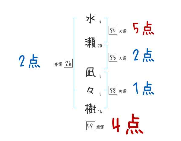 水瀬凪々樹さんの画数の鑑定結果
