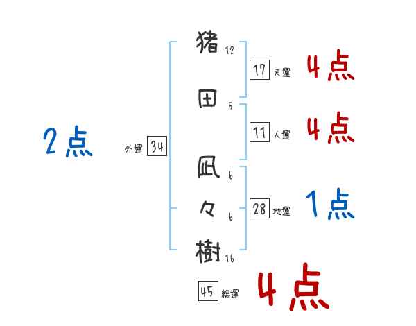 猪田凪々樹さんの画数の鑑定結果