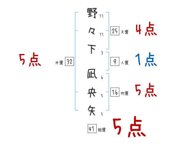 野々下凪央矢さんの画数の鑑定結果