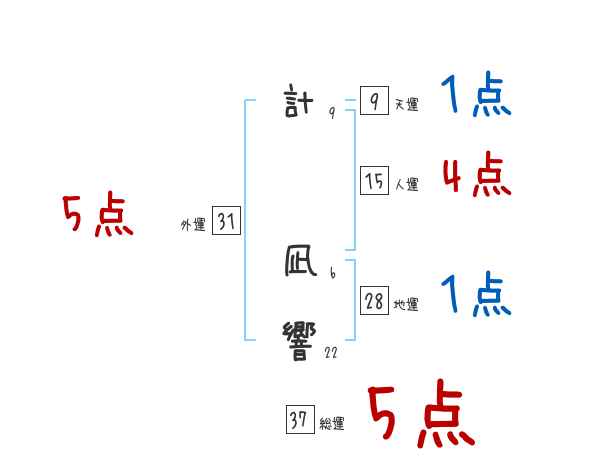 計凪響さんの画数の鑑定結果