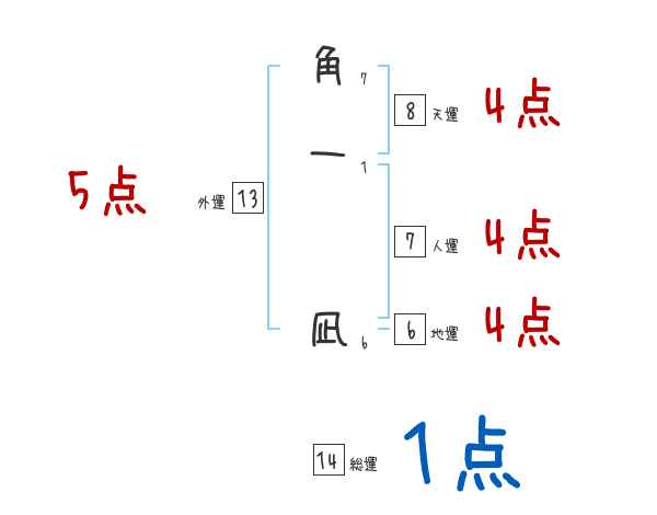 外運![]() | 角一凪さんの外運は13画の5つ星!才能に恵まれ人気がある。名声を手に入れる。円満な人生。 生活面を象徴する運勢です。外部から受ける影響力を表し、結婚運、家庭運や職場、環境への順応性を表します。 |