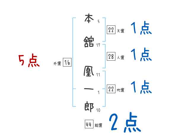 本舘凰一郎さんの画数の鑑定結果