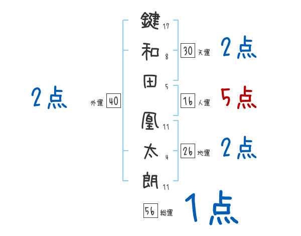 鍵和田凰太朗さんの画数の鑑定結果