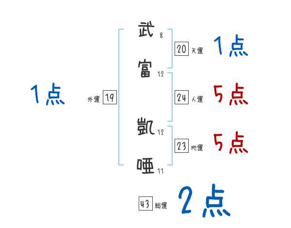 武富凱唖さんの画数の鑑定結果