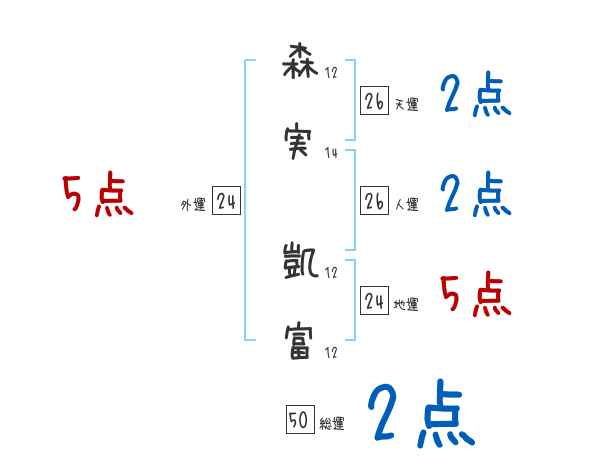 森実凱富さんの画数の鑑定結果