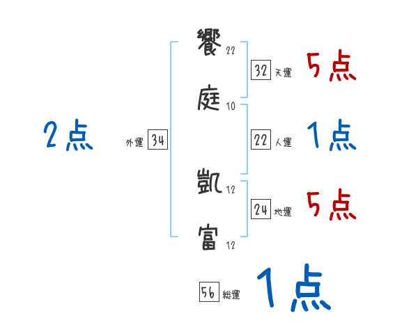 饗庭凱富さんの画数の鑑定結果