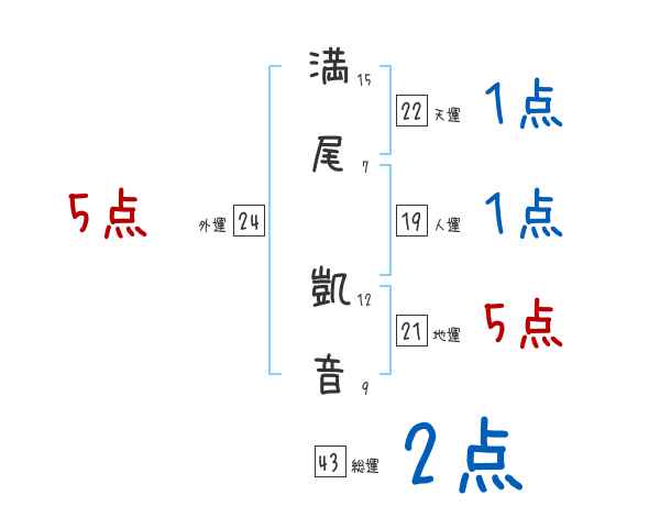 満尾凱音さんの画数の鑑定結果