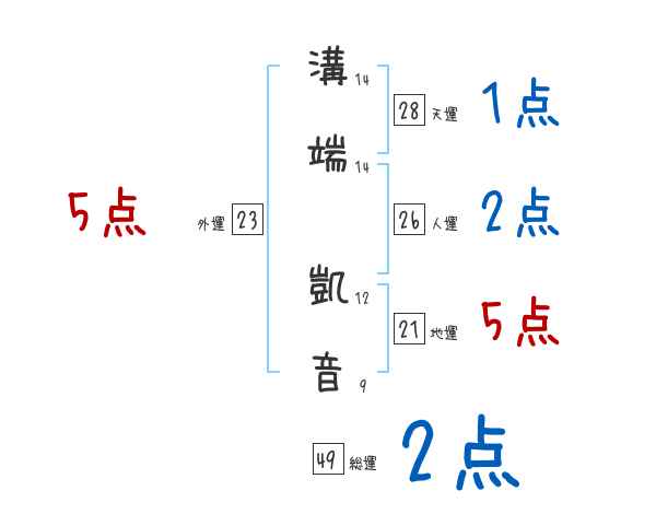 溝端凱音さんの画数の鑑定結果