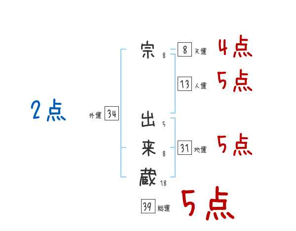 宗出来蔵さんの画数の鑑定結果
