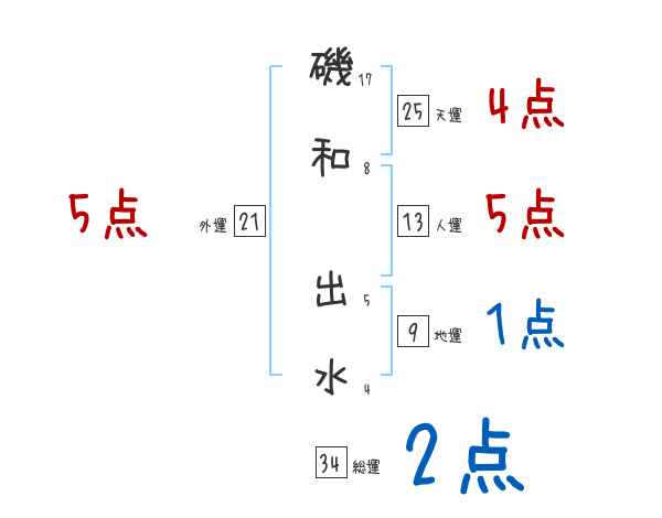 磯和出水さんの画数の鑑定結果