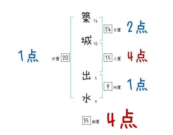 人運![]() | 築城出水さんの人運は15画の4つ星!人徳があり出世する。順調に物事を進め円満な人生。 性格や才能などを表す2番目に重要な運勢です。人間関係や協調性、社会的な成功に影響します。主に20歳から50歳ぐらいまでの中年期の運勢を表します。 |