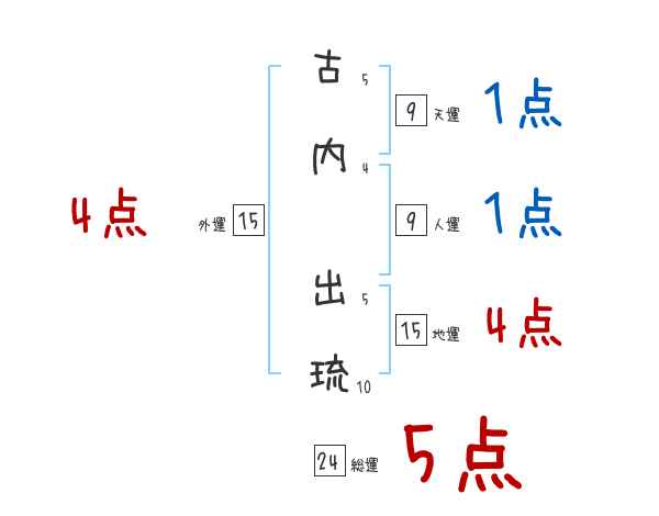 古内出琉さんの画数の鑑定結果