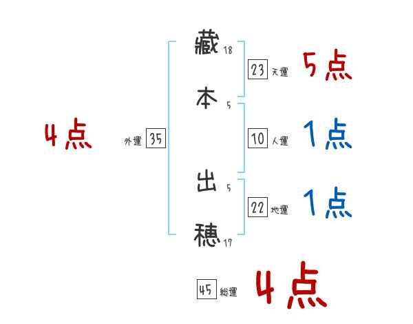 藏本出穂さんの画数の鑑定結果