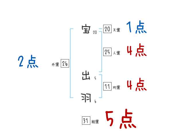 宝出羽さんの画数の鑑定結果