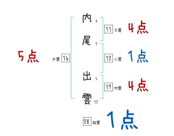 内尾出雲さんの画数の鑑定結果