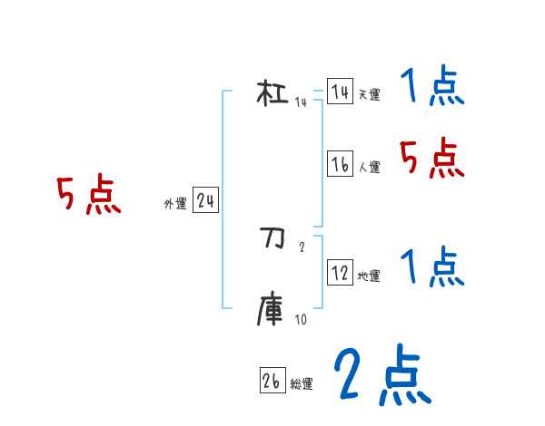 天運![]() | 杠刀庫さんの天運は14画の1つ星!人に対して優しいがストレスを溜め込みがち。人間関係のトラブルを避けるよう気をつけましょう。 家系が持つ宿命的な運勢を表します。祖先から受け継いだ苗字ですので自分の力が及びません。家柄を象徴します。 |