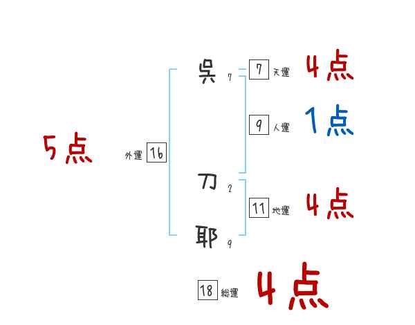 天運![]() | 呉刀耶さんの天運は7画の4つ星!強い意志や信念を持ち独立心が強い。自立する。 家系が持つ宿命的な運勢を表します。祖先から受け継いだ苗字ですので自分の力が及びません。家柄を象徴します。 |
