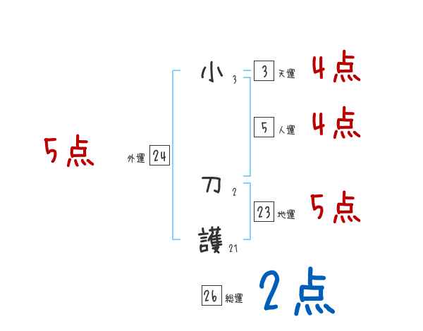 小刀護さんの画数の鑑定結果