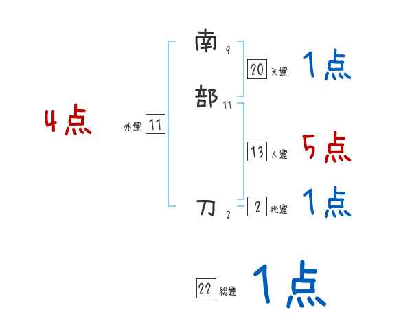 南部刀さんの画数の鑑定結果