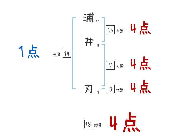 外運![]() | 浦井刃さんの外運は14画の1つ星!人に対して優しいがストレスを溜め込みがち。人間関係のトラブルを避けるよう気をつけましょう。 生活面を象徴する運勢です。外部から受ける影響力を表し、結婚運、家庭運や職場、環境への順応性を表します。 |