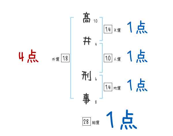 髙井刑事さんの画数の鑑定結果