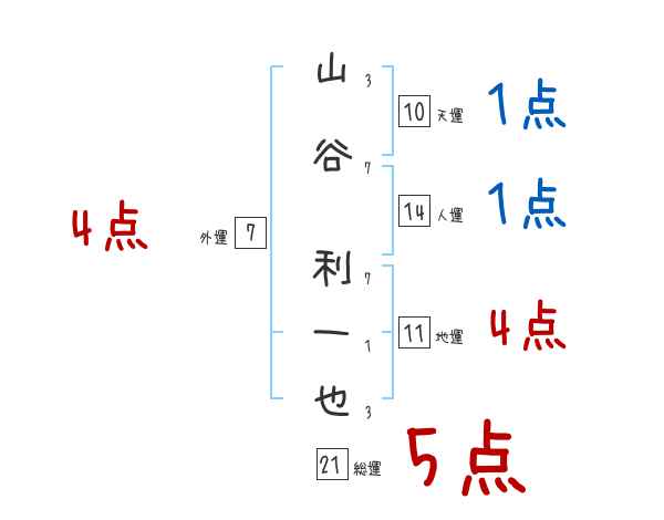 外運![]() | 山谷利一也さんの外運は7画の4つ星!強い意志や信念を持ち独立心が強い。自立する。 生活面を象徴する運勢です。外部から受ける影響力を表し、結婚運、家庭運や職場、環境への順応性を表します。 |