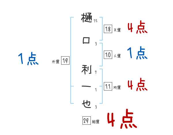樋口利一也さんの画数の鑑定結果