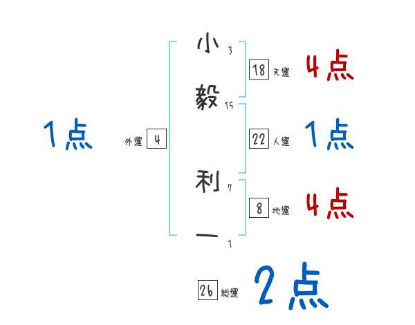小毅利一さんの画数の鑑定結果