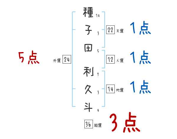 種子田利久斗さんの画数の鑑定結果