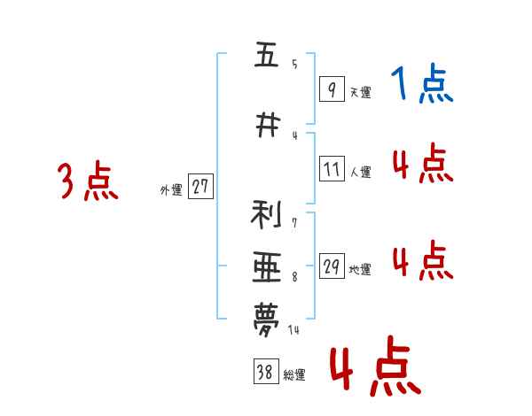 五井利亜夢さんの画数の鑑定結果