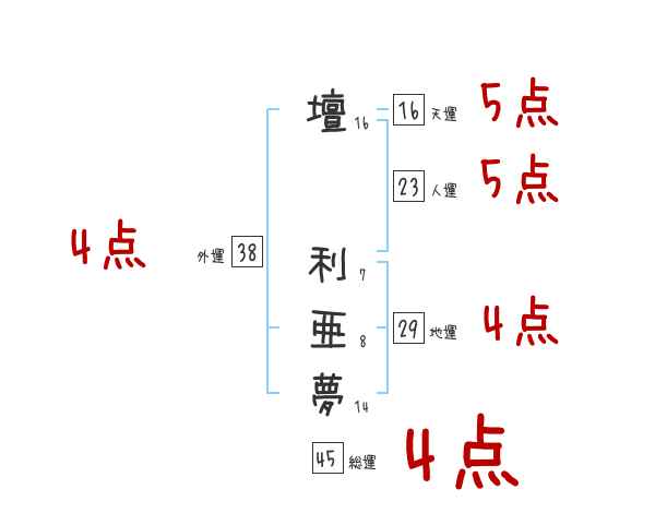 壇利亜夢さんの画数の鑑定結果