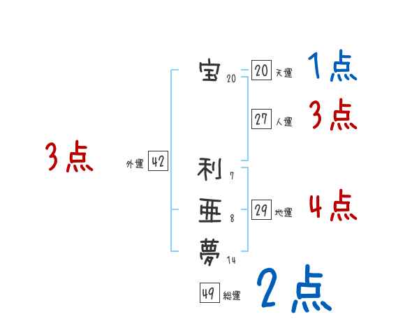 総運![]() | 宝利亜夢さんの総運は49画の2つ星!不安定な性格で明暗がある人生。周りの人には支援されやすい。 あなたの人生を表す1番重要な運勢です。生涯を通じて影響する総合運となり、主に50歳以降の晩年期に影響を及ぼします。 |