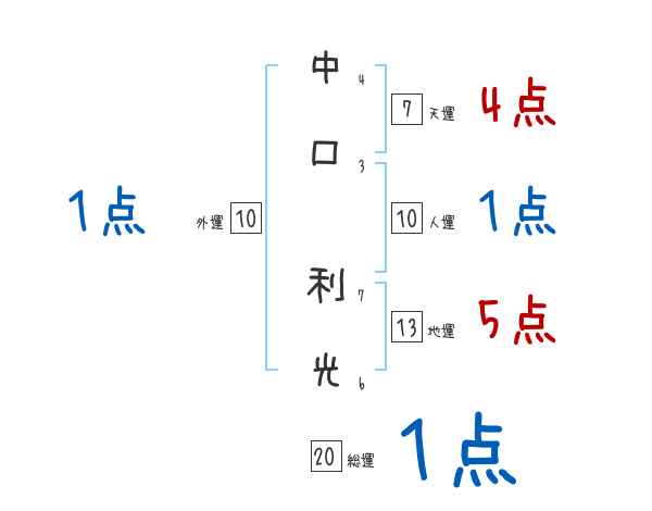 中口利光さんの画数の鑑定結果