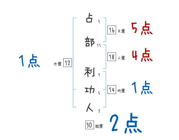 占部利功人さんの画数の鑑定結果
