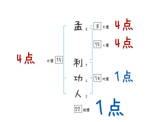 孟利功人さんの画数の鑑定結果