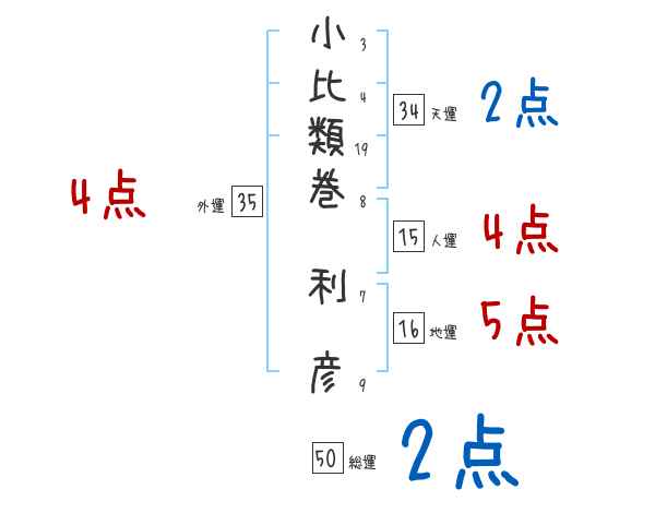 小比類巻利彦さんの画数の鑑定結果